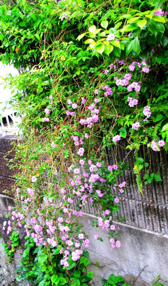 狭い庭で主に鉢植えでいろいろな花を育ててます。手入れせず放任しているのでジャングル状態です。