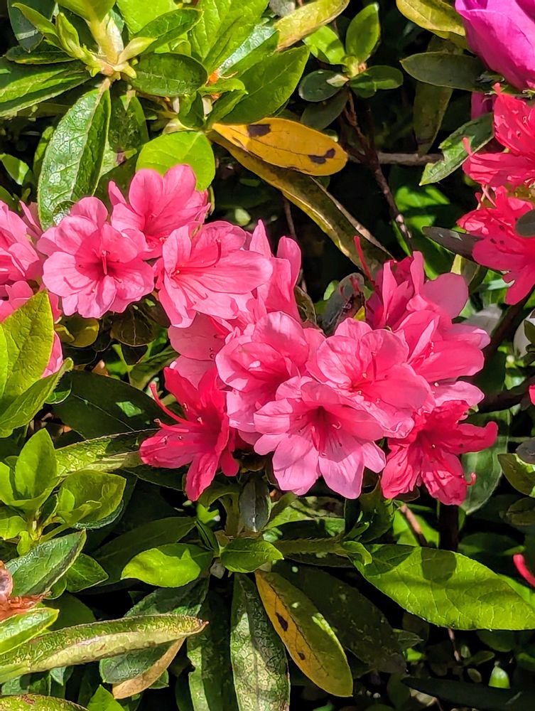 越してきてから3色セットで植えた二重咲きのツツジです(二重に見えにくいですね😅)
