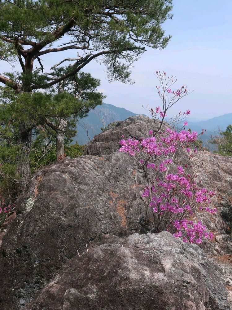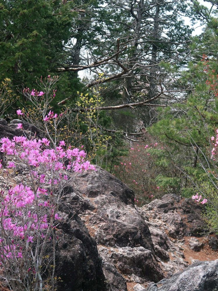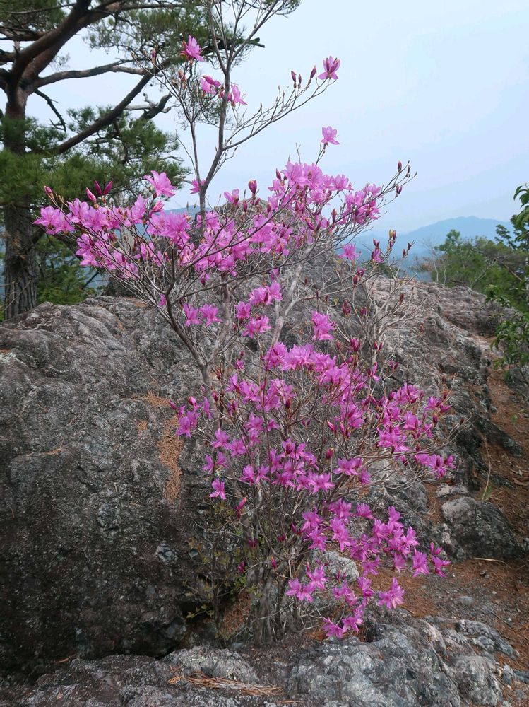山頂には岩場に生えるミツバツツジが出迎えてくれました。