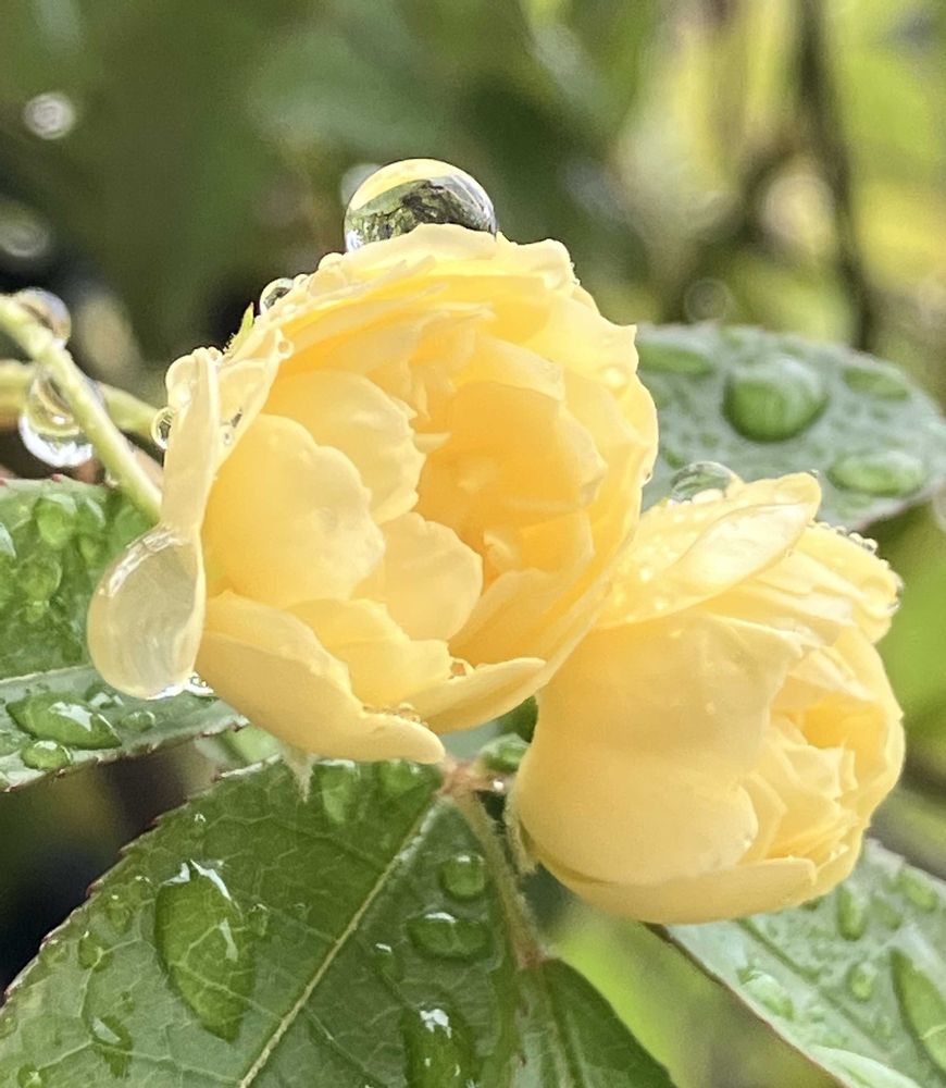 雨上がりの朝と晴れた日のモッコウバラ💛💛💛