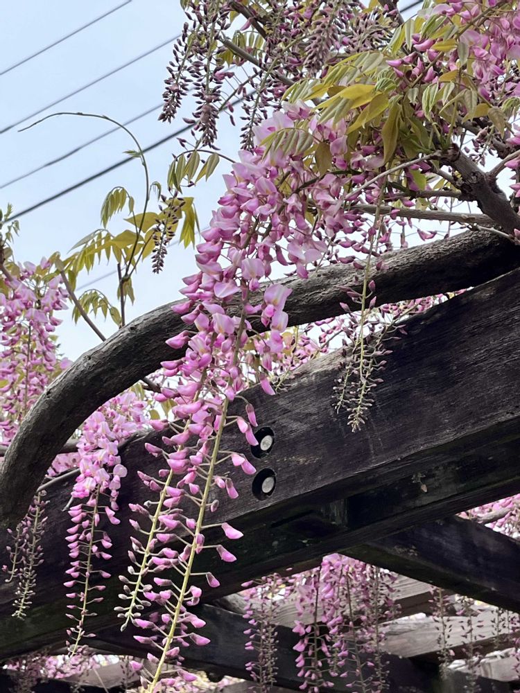 3枚目、昨日の散歩時に見かけた藤の花。ピンク色でとても可愛らしかった☺️✨