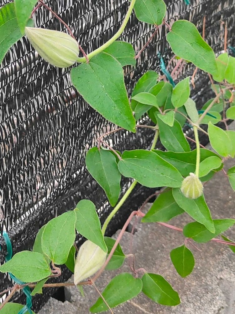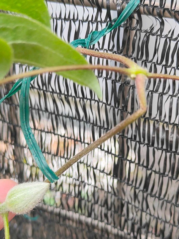 クレマチス、唯一の蕾が悲しいですね😢なんとかテープで復活を願ってます🙏