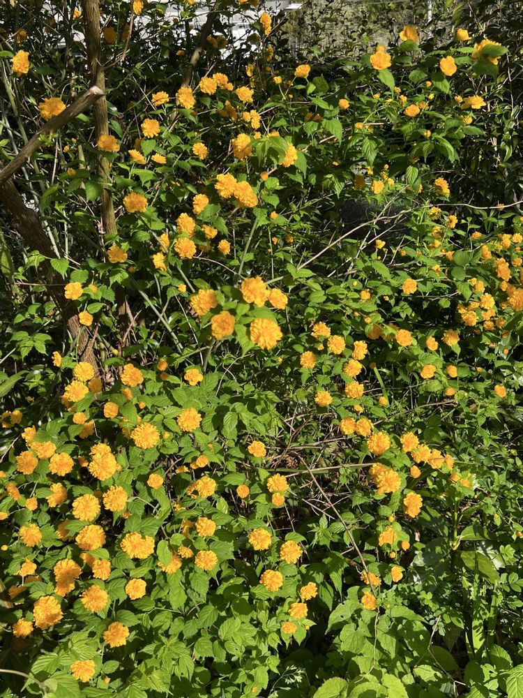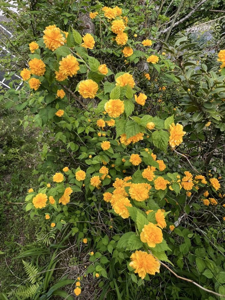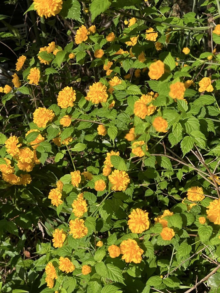 何でもありの花畑 八重咲き山吹の色も良い色ですね 黄色と違い少しオレンジかかった🧡 此れも元気の出る色のお花ですね〜🎶🎶🎶🎶🎶💘