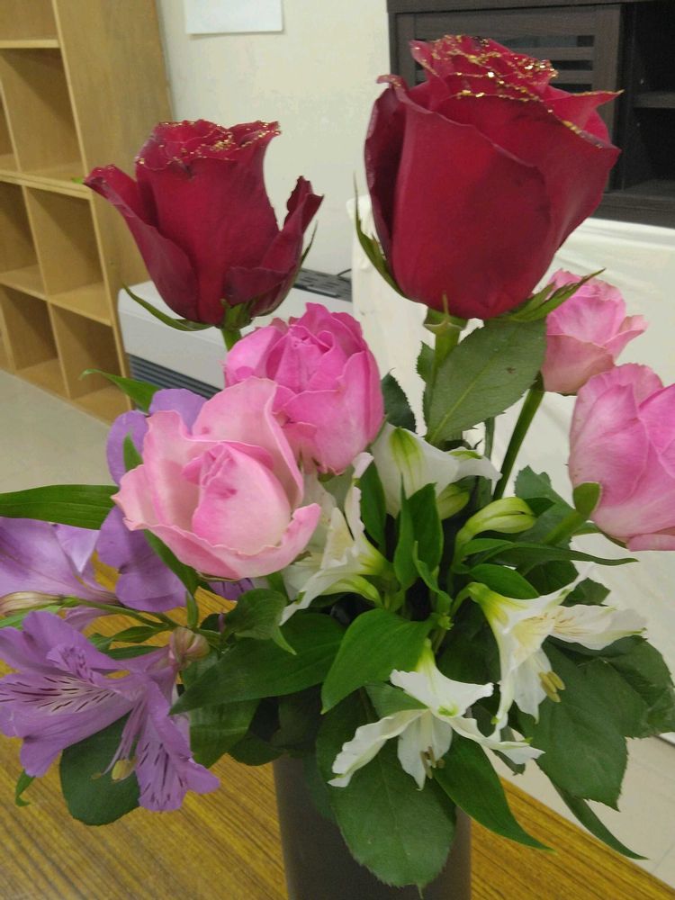 今日のお花赤い薔薇🌹はお花屋さんの店先にあったら、始めに選びんでいます✨