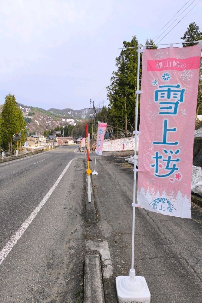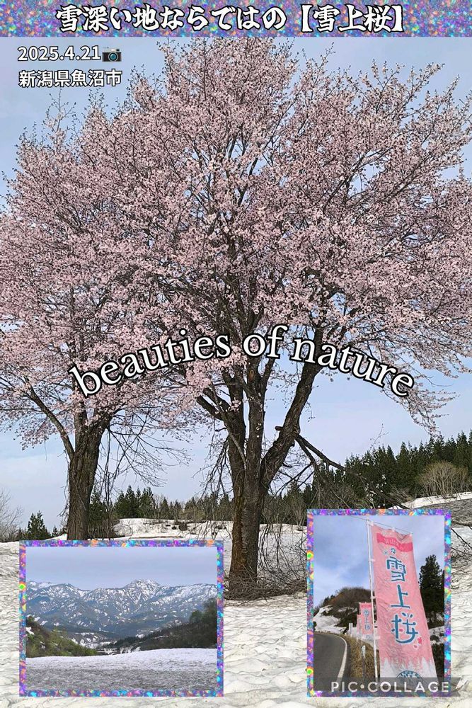 【雪上桜】とは名前の通り、”雪の上で咲く桜”のこと。 通常、雪国でも桜が咲く時期には雪がとけます。 しかし、魚沼市内でも特に雪深い「福山地区」では、桜の咲く時期でもまだ雪が残っています。 そのため、雪景色を見ながら満開の桜を見ることができる。
