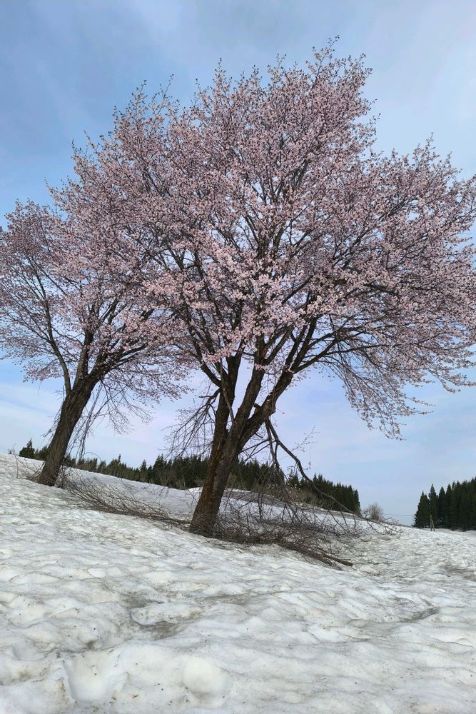 今年は例年に比べ残雪が多く残るため雪上桜も例年よりかなり見応えが👌