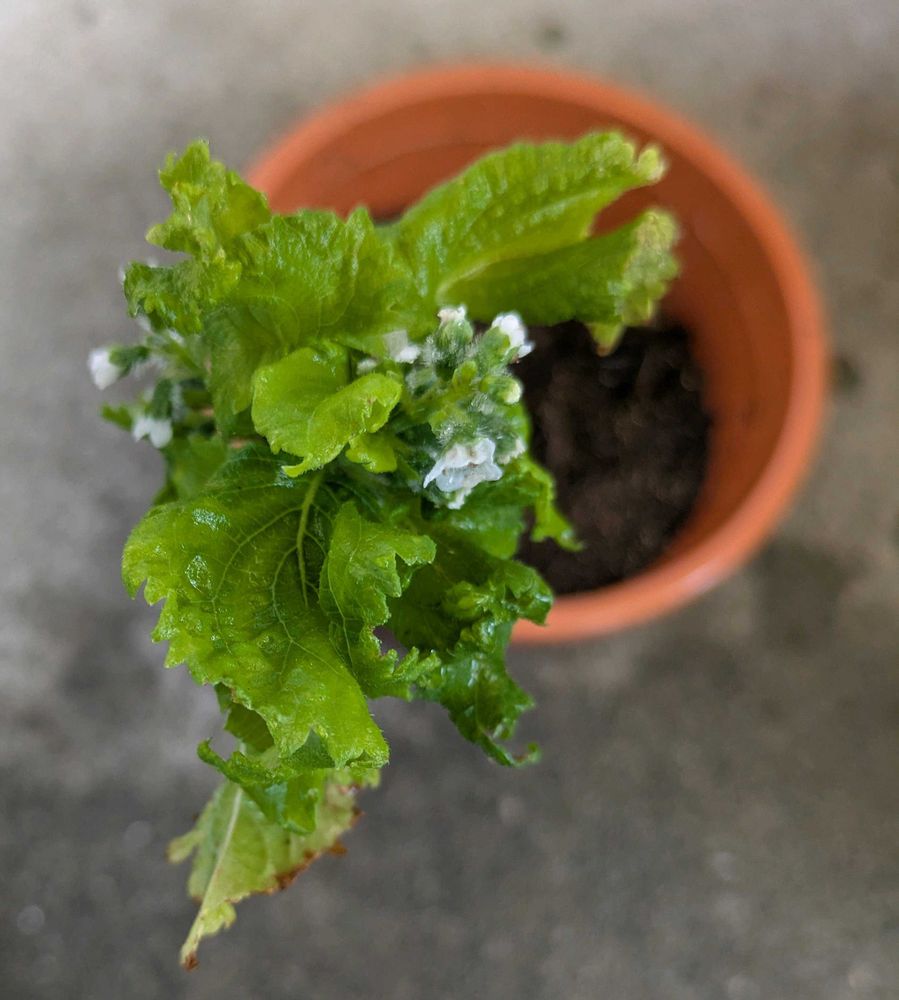 葉っぱ一枚で冬越しした青紫蘇。枯れると思ったら花が咲きました。種から育て薬味に使おうと思ったら何故か肝心の香りがしません。何でかな〜?でも新芽🌱が出てきて嬉しい😄