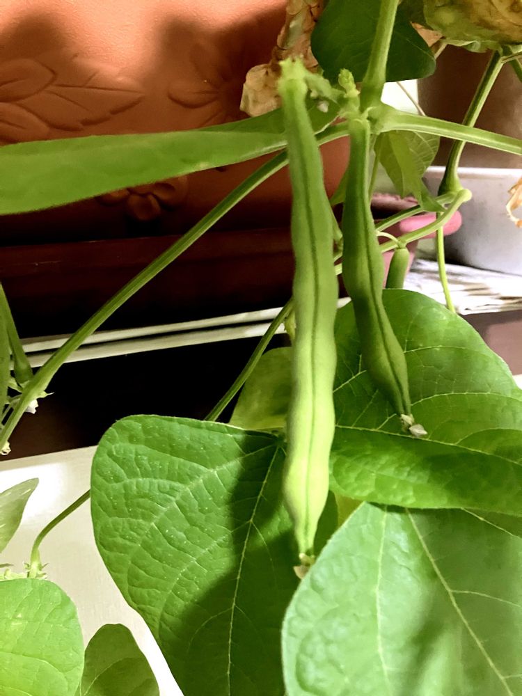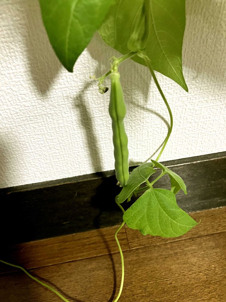 5年くらい前の豆、芽が出るのか試しに植木鉢の隅っこに埋めておいたら、ひょろーって芽が出て😅