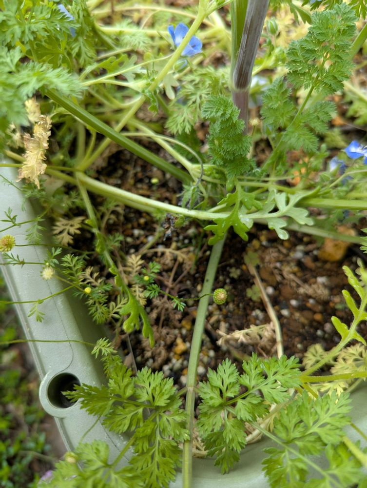 こぼれ種を放置してたプランターに、なかなか大きくならないニゲラがあるな~と思ってたら全然知らない花が咲いた!