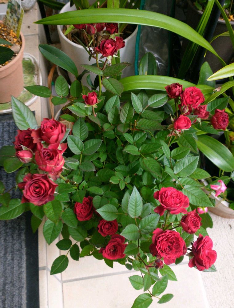 ③④⑤去年春 蓼科のバラクライングリッシュガーデンに行った記念にと買った、🌹深紅のミニ薔薇 今のところ蕾はないけど〜枯らしていません😅