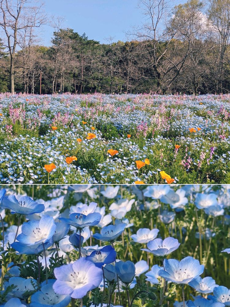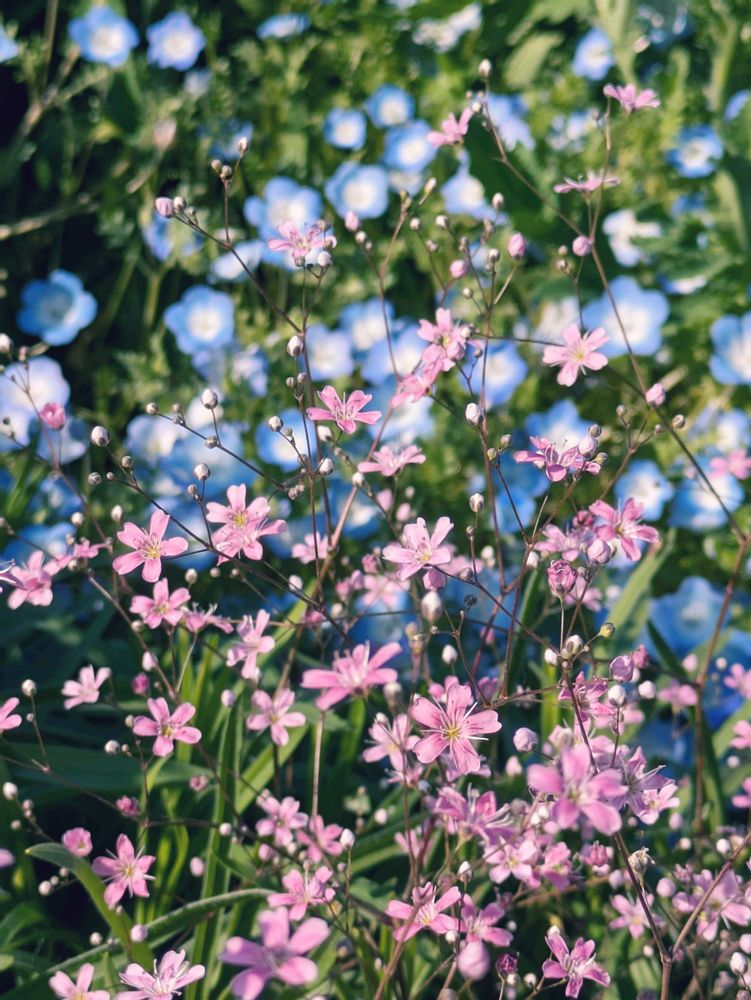 小さいくて元気なエアリーピンクやネモフィラや色々楽しめる小道 ❊(*˘︶˘*).。*