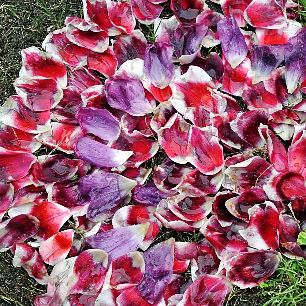 昨夜の風、雨でチューリップの花びらが散ってしまいました。(4/23)🌷