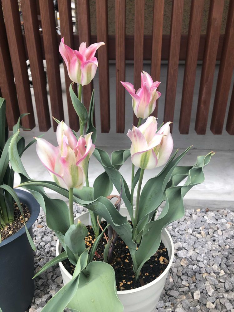 白花が咲いて困惑したチューリップがちゃんとピンクになってくれました。