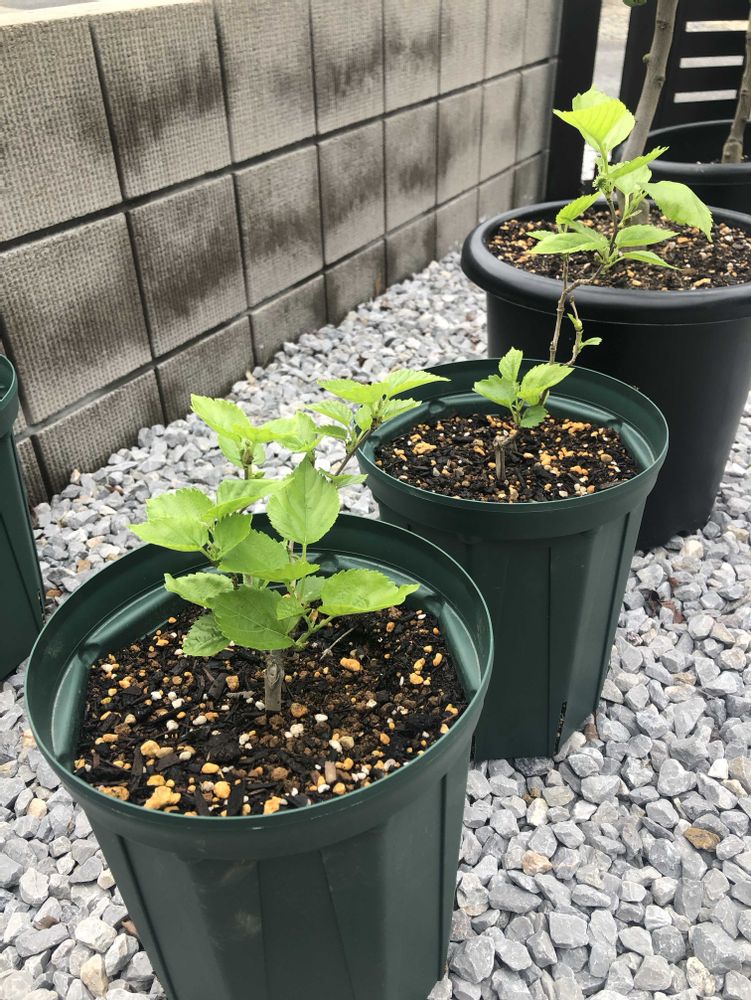 4枚目は山桑。これも春に植え付けました。マルベリーじゃなくて日本原産桑。蚕が食べるヤツです。人間も葉っぱ食べられるそうです。