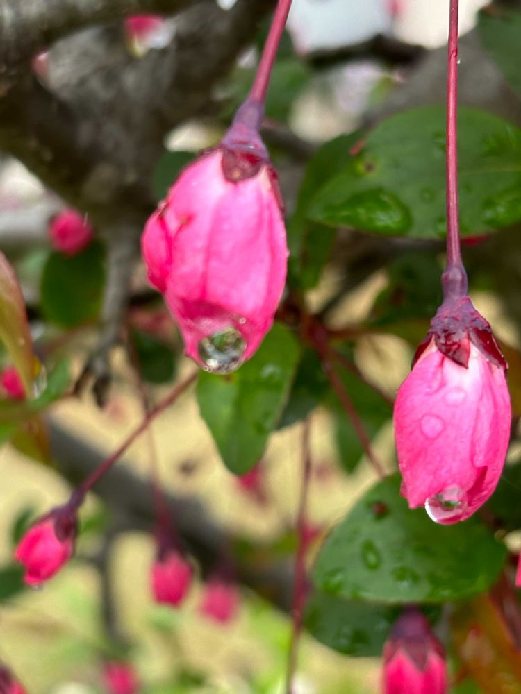 もう少しで咲きそうな花に、重そうに水滴💧が、、、🤭