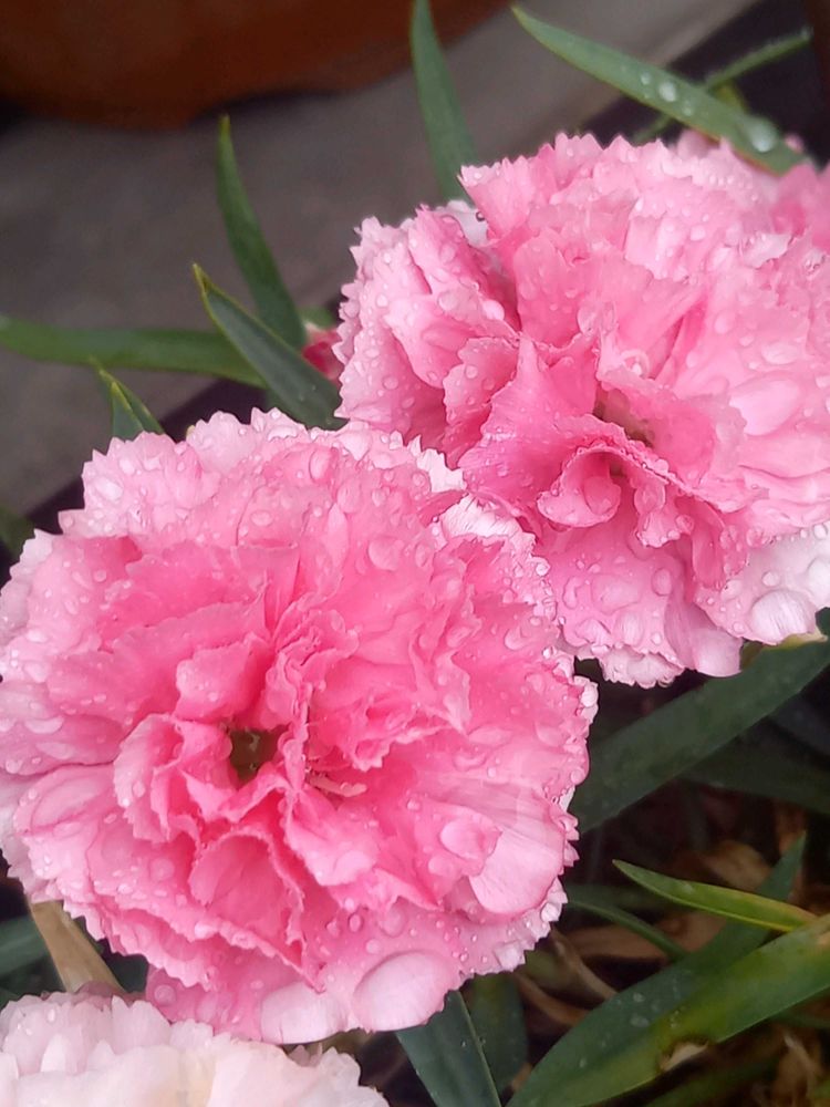 雨のなかピンクの🩷お花さん かわいい(⊃´▿` )⊃♡