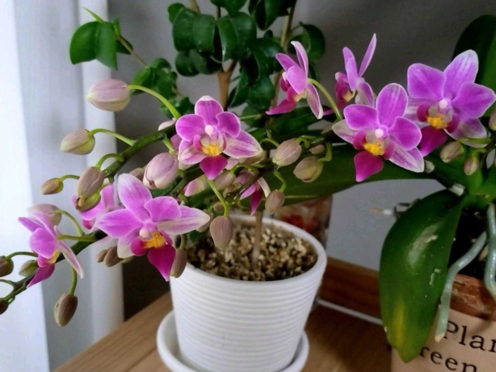 こんばんは🌛すごい蕾の数ですね🤩ピンクの可愛い胡蝶蘭長く楽しめますね😍