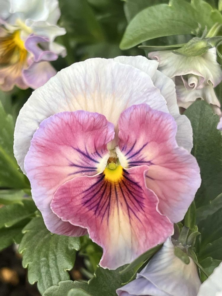 今シーズンも北島園芸さんのビオラ3種を大きな鉢に寄せて植えました。その1つがシャボンアルティ💗🩵