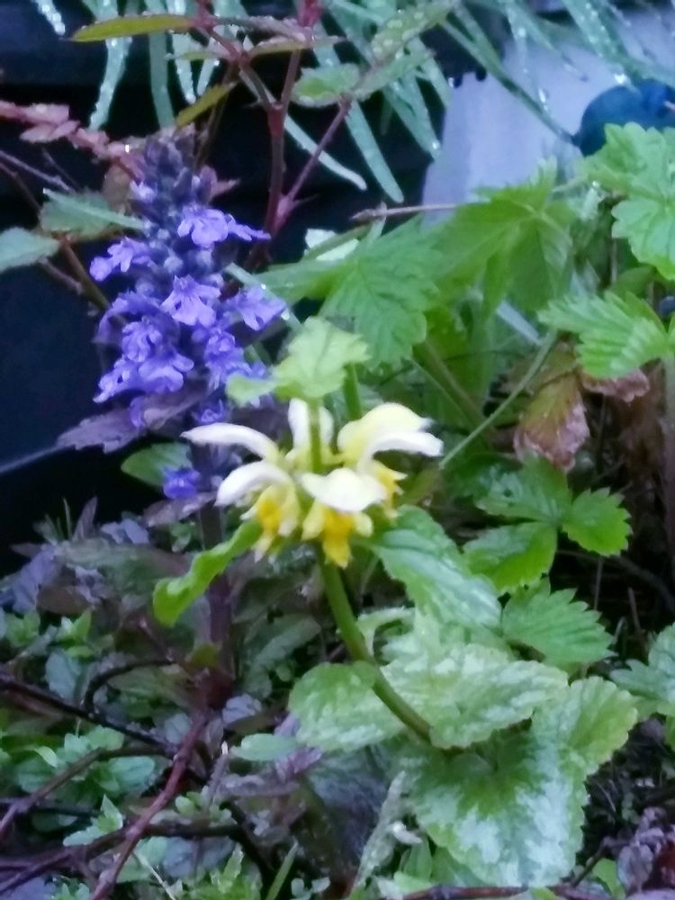 後ろにはアジュガ(西洋ジュウニヒトエ)の花も咲いてくれてます✨