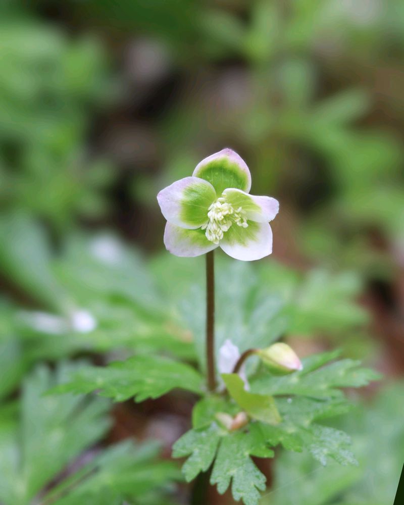 ニリンソウの群生の中で、何故か視線を感じ(笑)振り向くと、すっくと背伸びしたミドリニリンソウが……😆