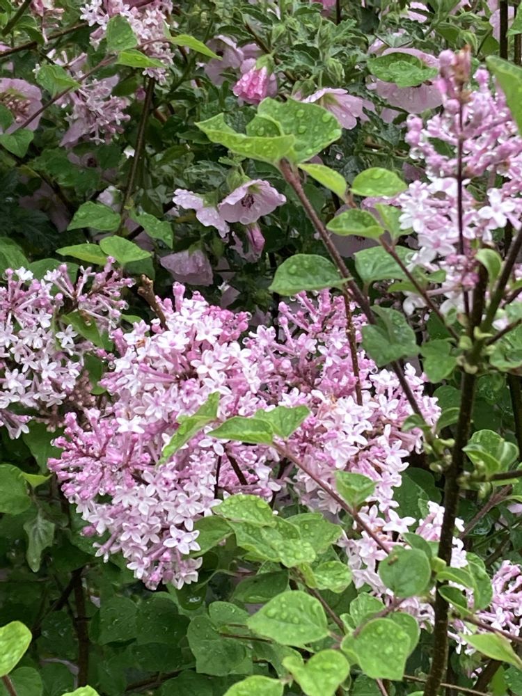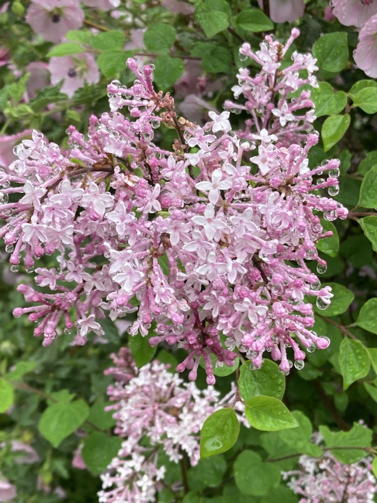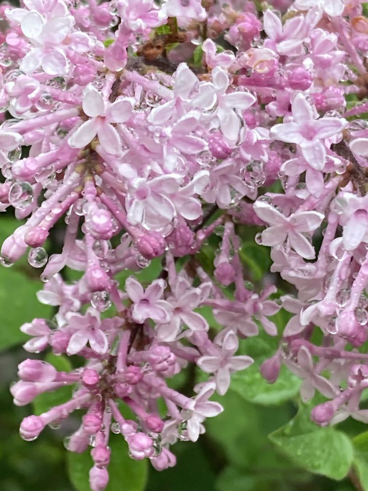 雨の中、しっとりとヒメライラックの花が咲いています🌱🌿