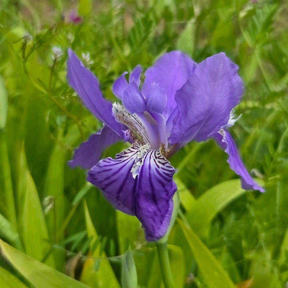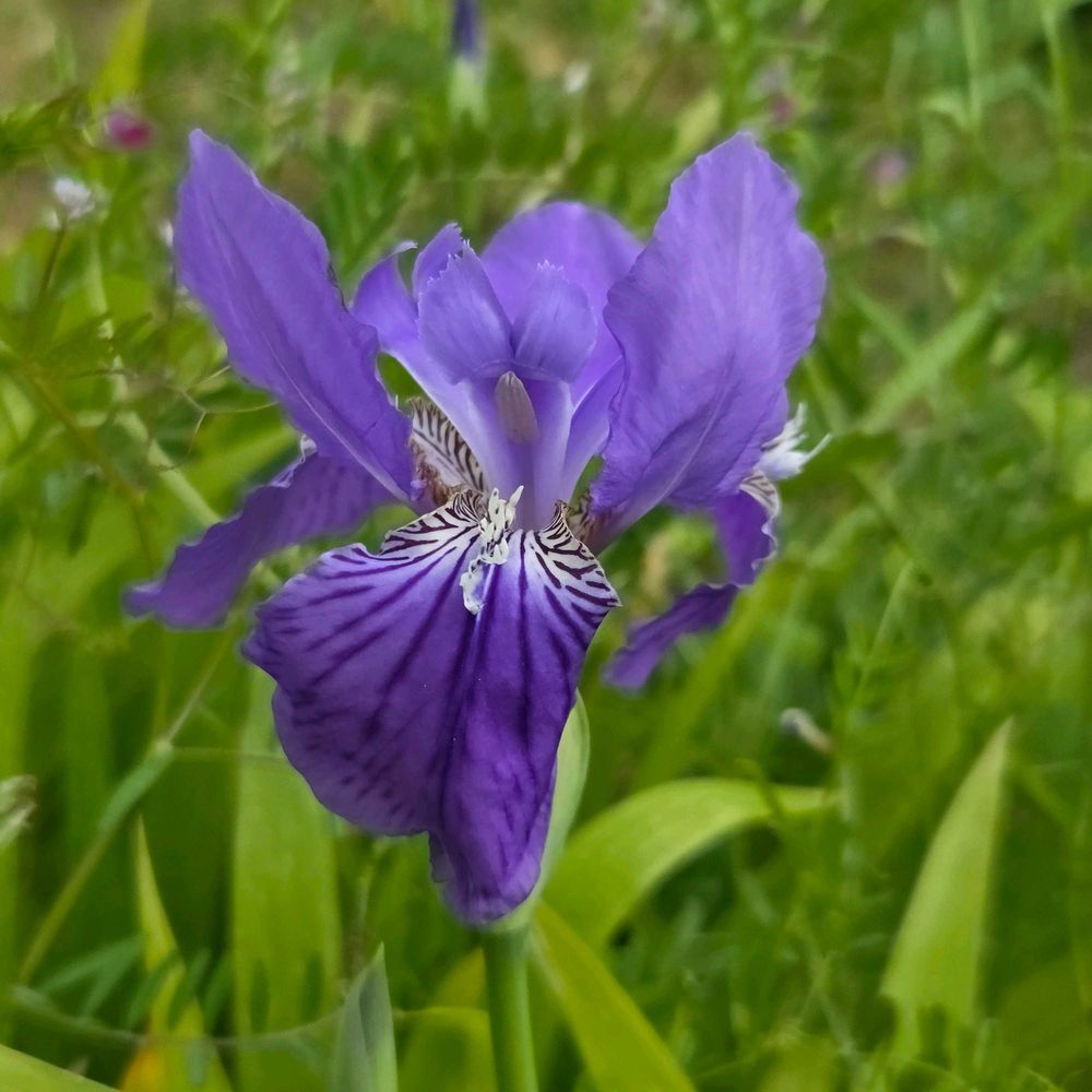 イチハツが開花しました!よく、イリス・アルビカンスや古い品種のジャーマンアイリスと間違われたりしますが、下の花弁の形状で見分けることができます。