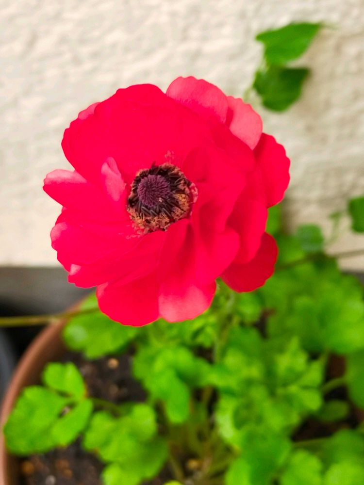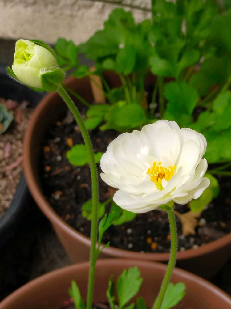 秋植え球根のラナンキュラスが赤、白と咲きました🙌