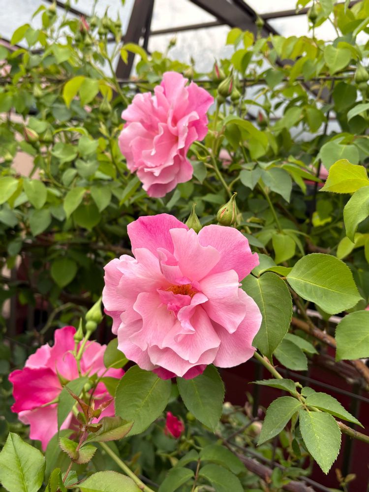 よく見ると枝は昨年から出ていて、2月に私が誘引してるわけ💦出てきた葉っぱはミニバラ程度の小さいものなの。でも日陰になってるから小さいのかな程度にしか思ってなくて、お花が咲いてからびっくりよ😆去年、突然目覚めて枝を伸ばしたのかもしれないわ。このまま様子を見るつもり。