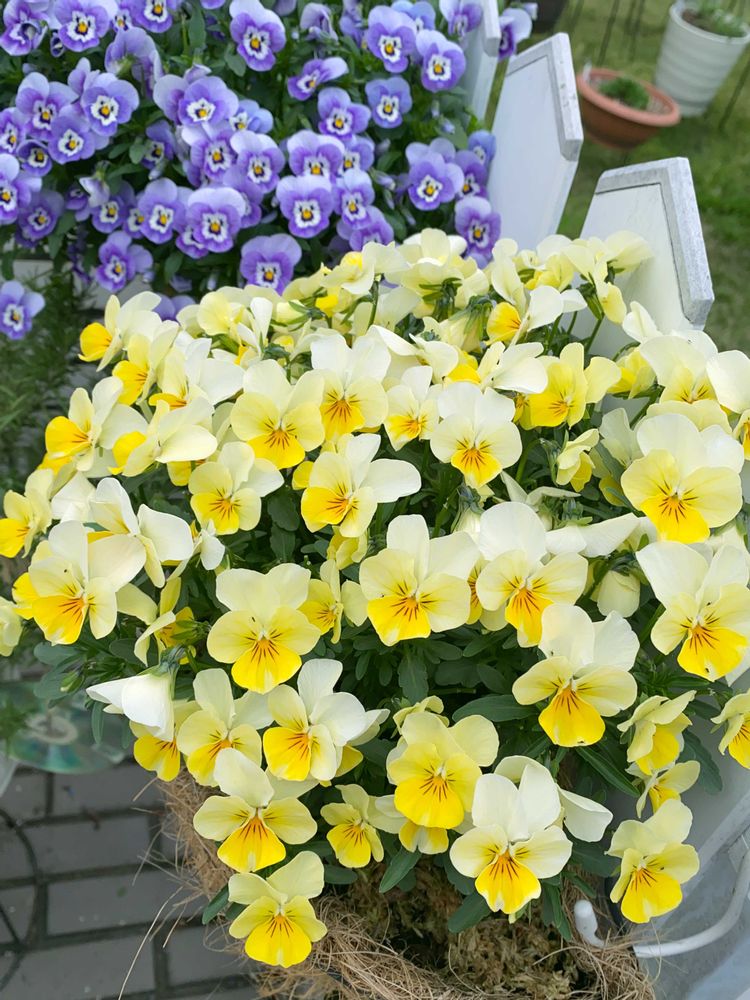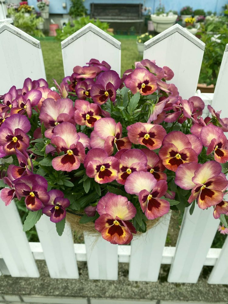 もりもりハンギングがそろそろ最後です🥹半年楽しませてくれました❣️ハンギングのある南側はよく咲くけど、終わりも早いです。東側にいる地植えの子たちはもう少しもちそうかな。