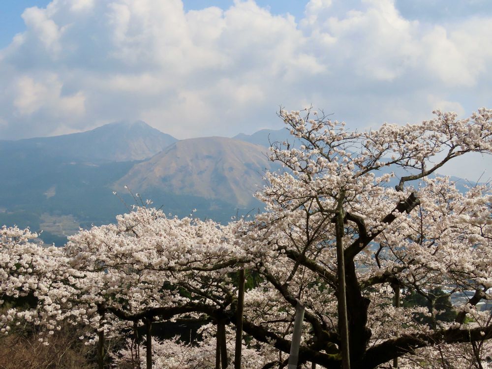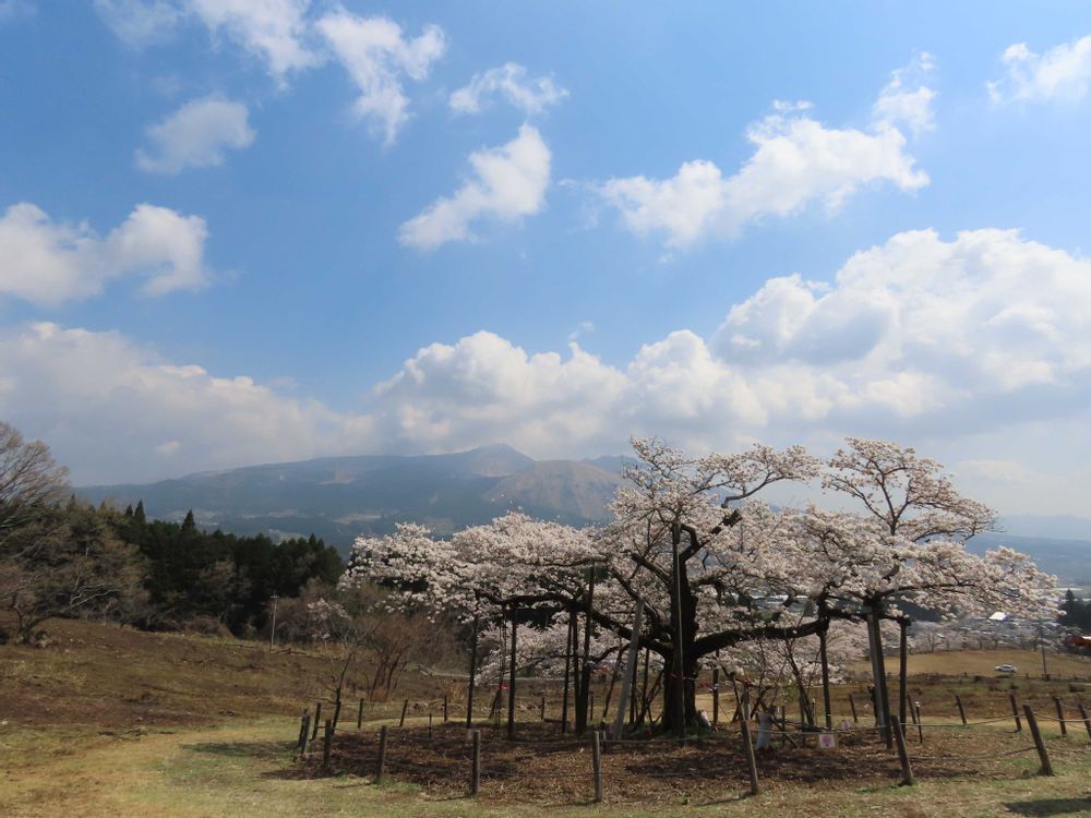 南外輪山に咲く、樹齢およそ90年の樹形の美しい一本桜🌸