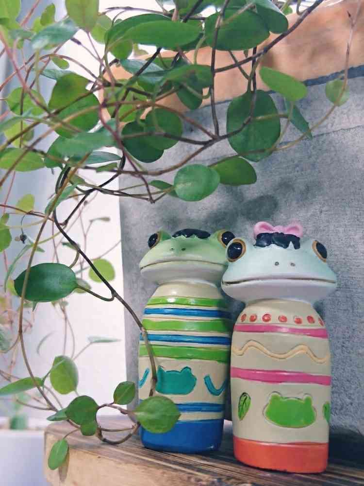 さん、因みにですが、🐸のこけしちゃんたちはどこに置いてもシックリきません😭ちょっと個性が強すぎて…出番がないので無理やり植物の前に置きました😁ww
