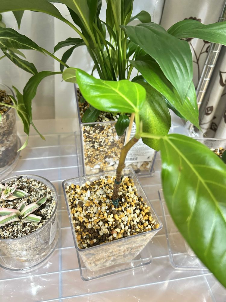 土に植えてはみたものの、葉っぱがどんどんチリチリに🥲水栽培に急きょ切り替え。頑張って!!!!