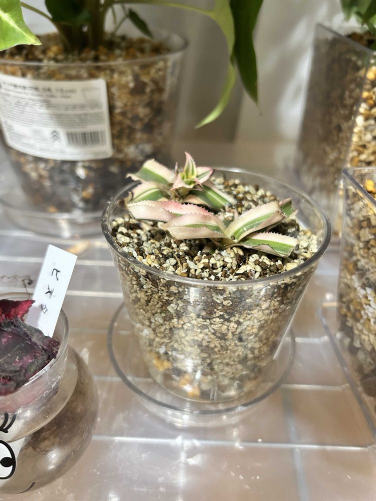 これはダイソーの5号透明植木鉢に植え替え。透明鉢は鉢カバーに入れることを考えているので丸の方が使いやすいかも🤔