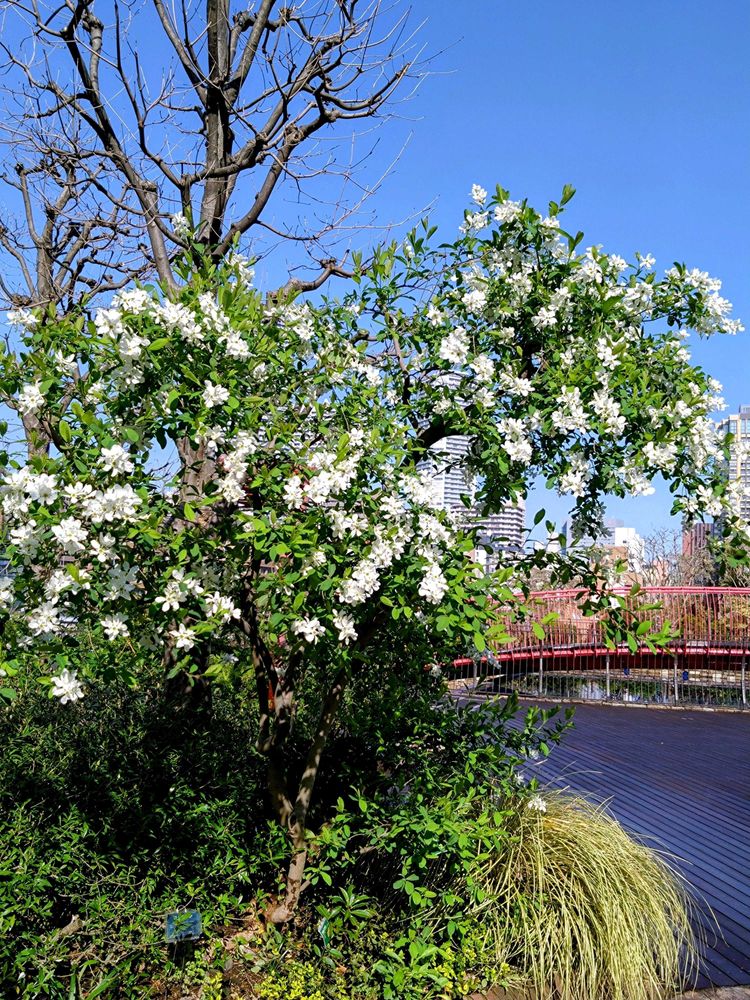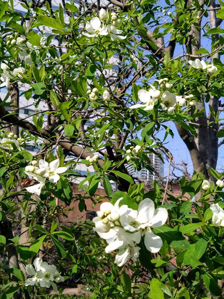 このリキュウバイは、職場エリアの植栽で、おそらく