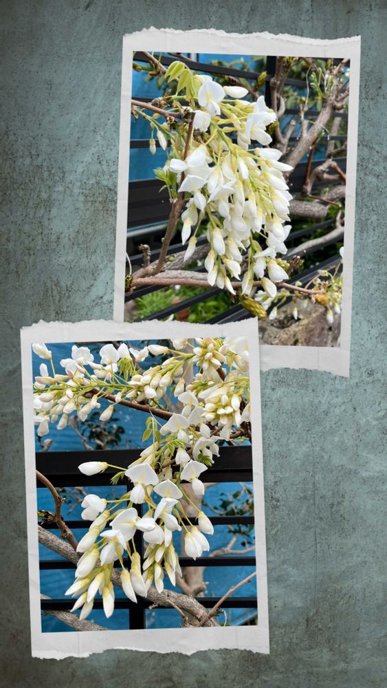 1枚目のコラージュ写真は、白藤です😆👍🌿🌸💕 今年もいつもの散歩道で、咲き始めていました😆👍🌸💕 綺麗です🎶🤩🌸✨💕
