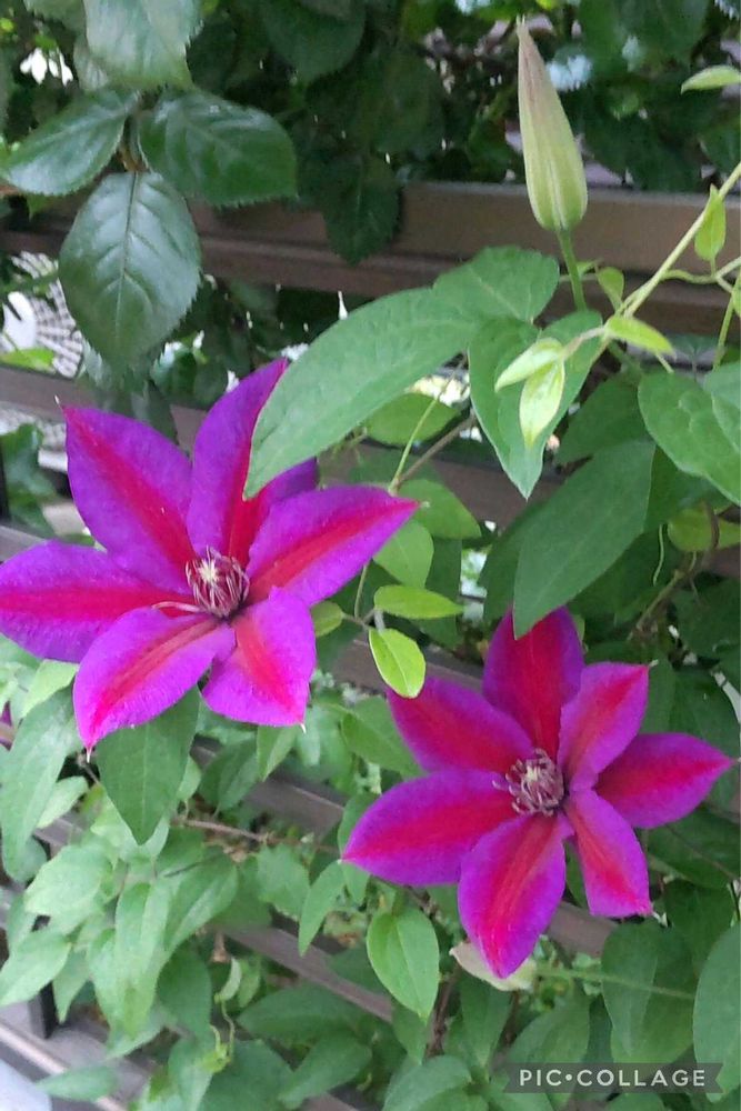 5枚目は、今朝咲いたクレマチス。母が植えたもので、40年ほど、この場所です。花びらの枚数が違うのも面白い💜🌿
