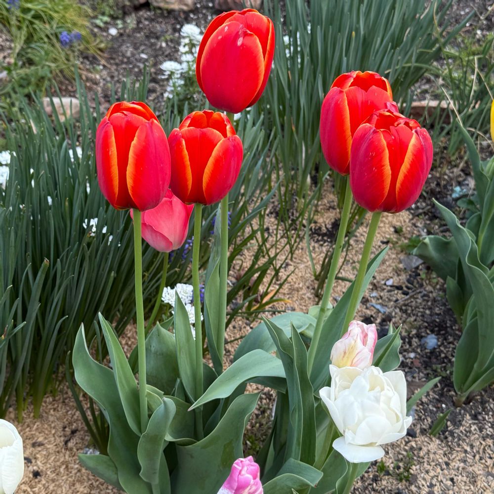 花壇のチューリップ編、最後は真っ赤な八重咲きチューリップ🌷