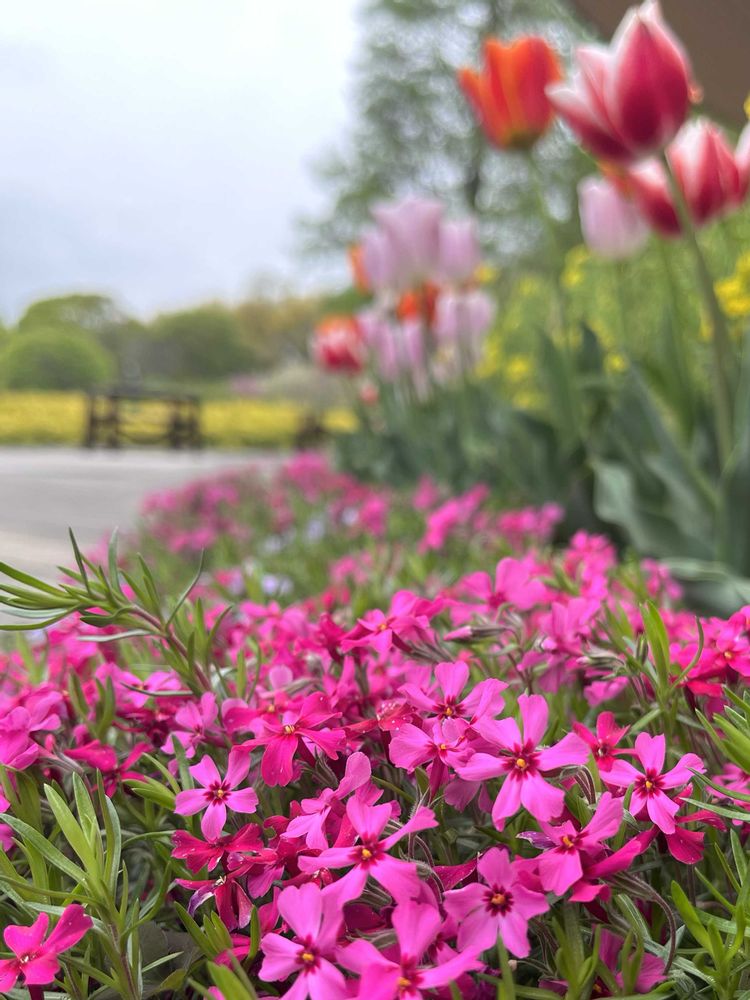 シバザクラと背景のぼんやりとしたチューリップが素敵なpic