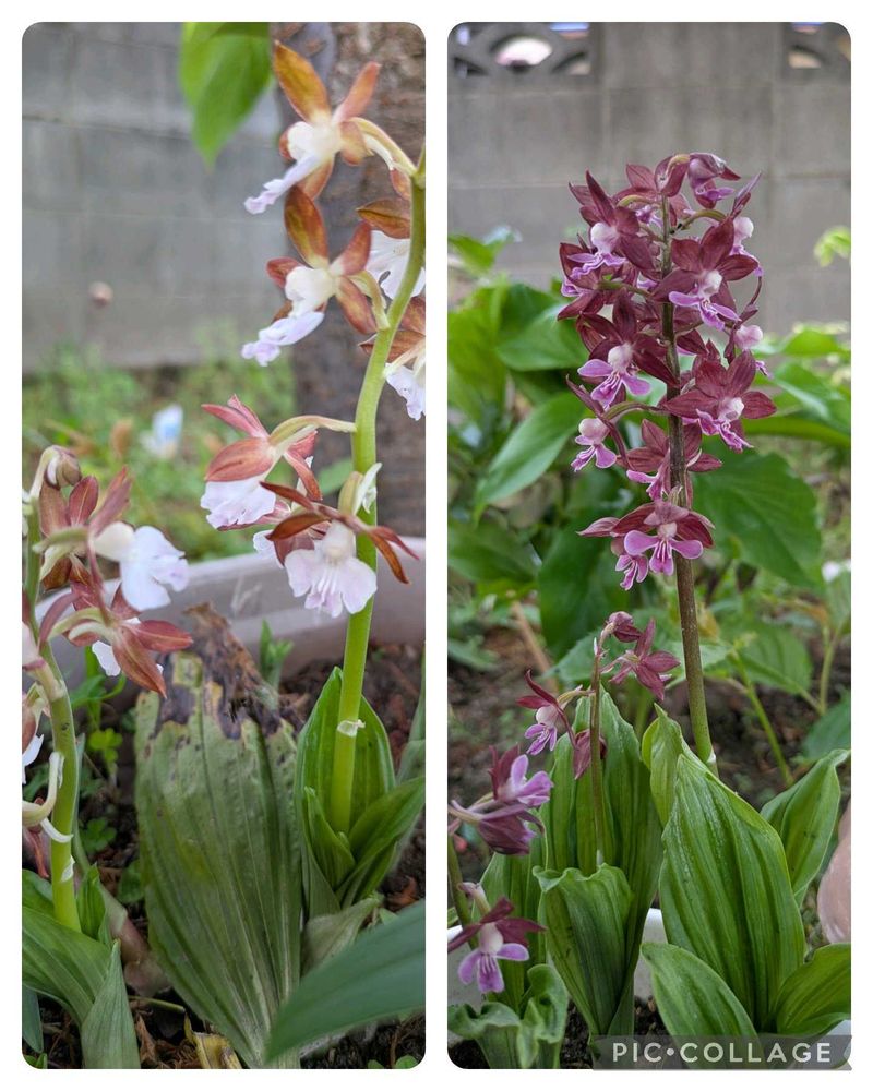 左のエビネは山にあるジエビネ