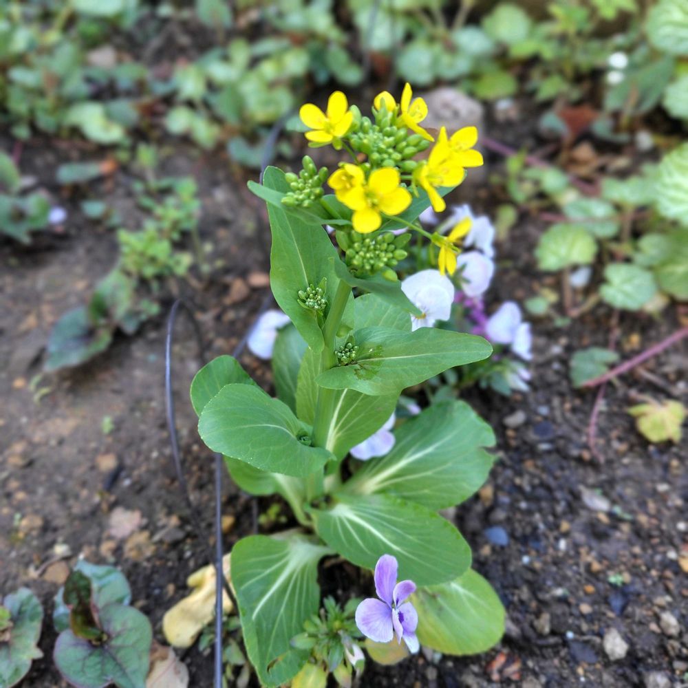 ミニチンゲンサイとビオラを植えましたが、チンゲンサイのお花がきれいに咲いています。種取りするつもりです。ビオラももうそろそろ終わりです。チンゲンサイの緑色とビオラの紫色がとてもきれいで、楽しませてくれました🌿🪻
