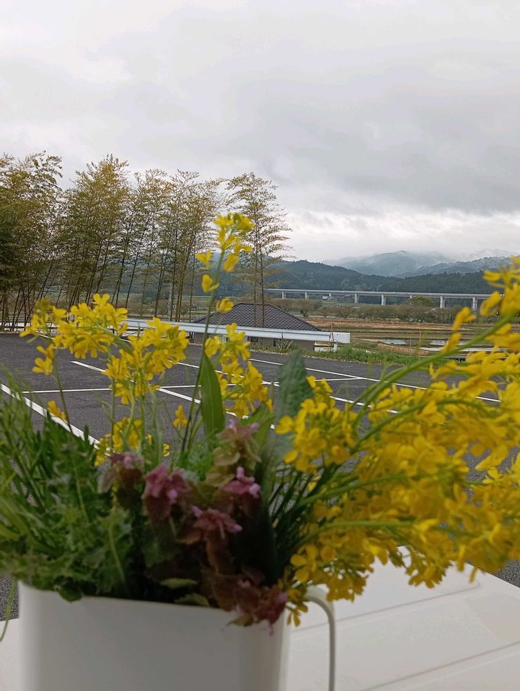 おはようございます☀福島楢葉は、葉桜ですが、一面菜の花🧡💛いい香りがただよってまさす😀今朝から職場のレストランの、キッチンフラワー再開します、宜しく😊田んぼは、水が張られてます🎶🎶