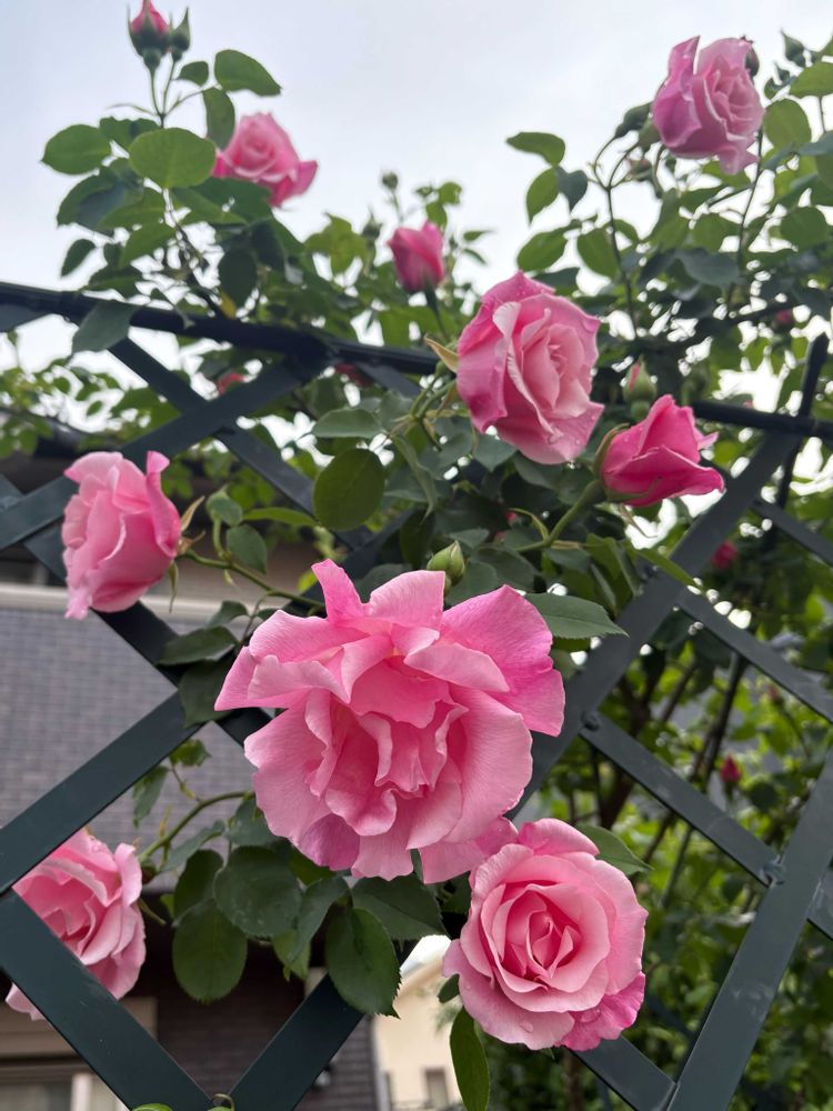 我が家のバラ、一番乗りのスパニッシュビューティーが咲き始めました。