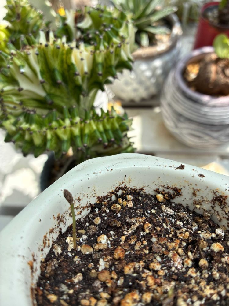 芽が出た🌱地植えしたら松の木になっちゃうってことよね🌳