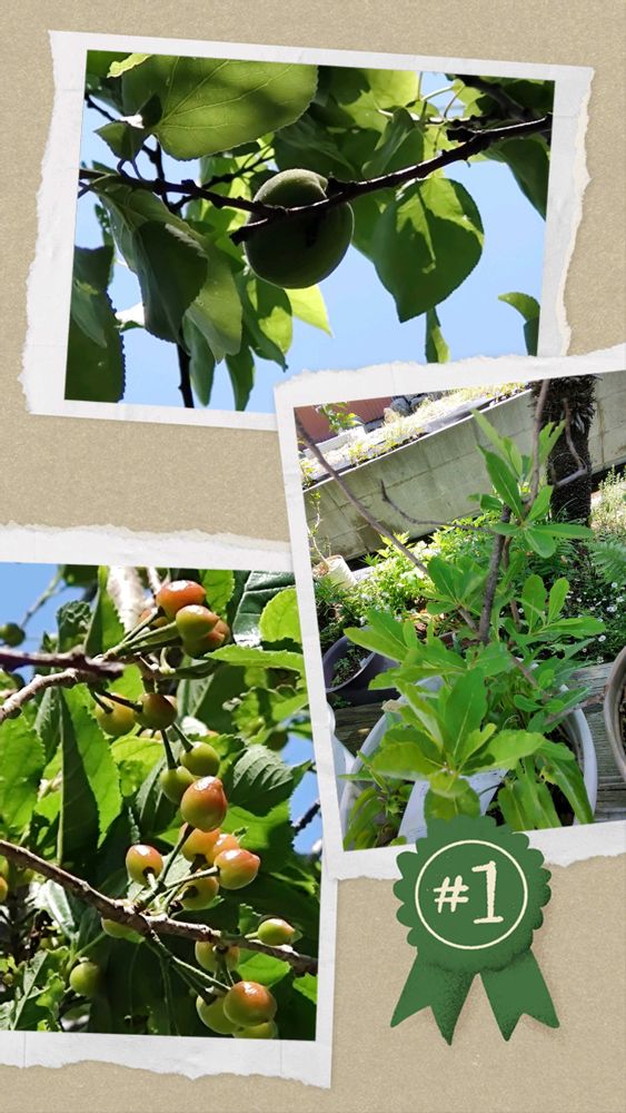 お花が綺麗にさいたアンズと暖地桜桃は実もなっています。暖地桜桃は可愛く色づき始めています🍒