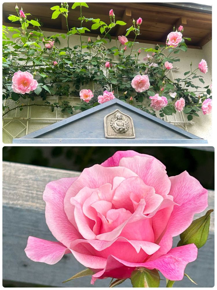 パーゴラのスパニッシュビューティー💕さん棚の上にも誘引してみました!今年はお花が大きいような気がする🤗