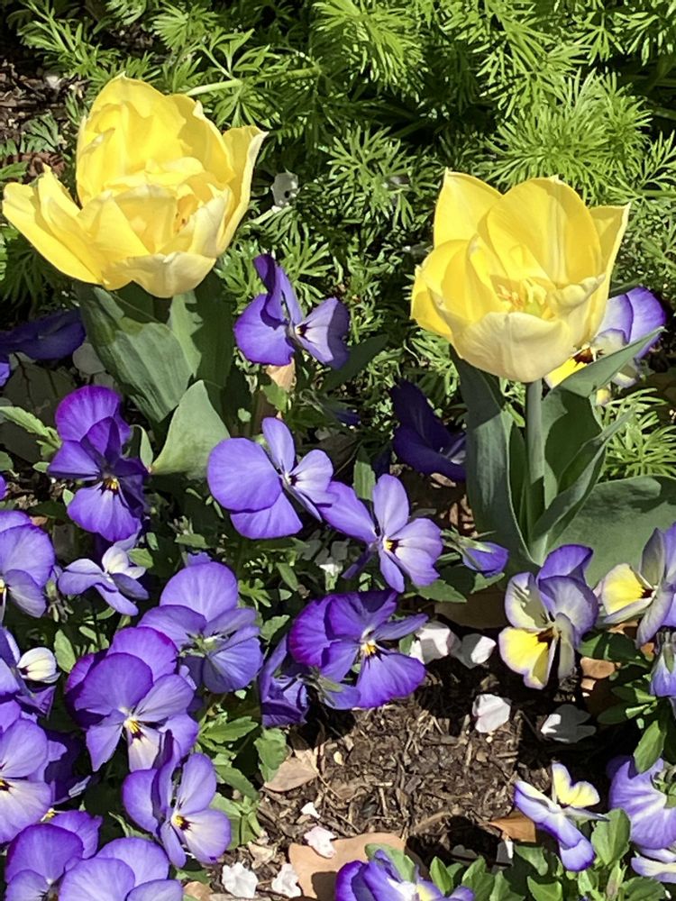 ③④黄色チューリップとビオラさんが一緒に咲いていました🌷