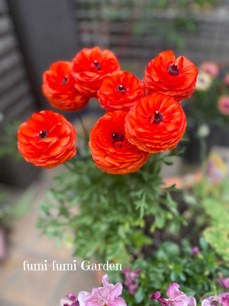③真っ赤なようなオレンジ🧡かな😊ラナンキュラス❣️