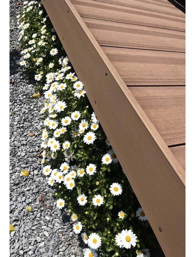 ②ウッドデッキの下に昨年のこぼれ種からノースボールが綺麗に1列になって咲いてます🤗💕