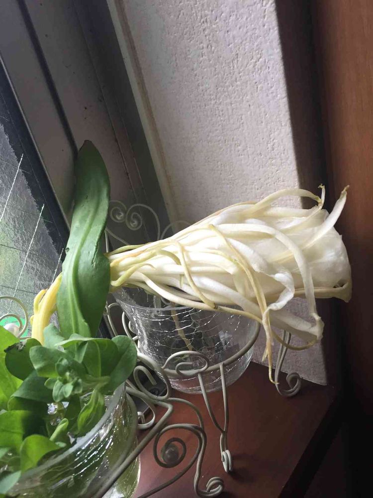 初めて本物の花を見たので、開花前か後かわからないのですが、先は正面から潰れてて元々閉じているのかも判断不可能です。