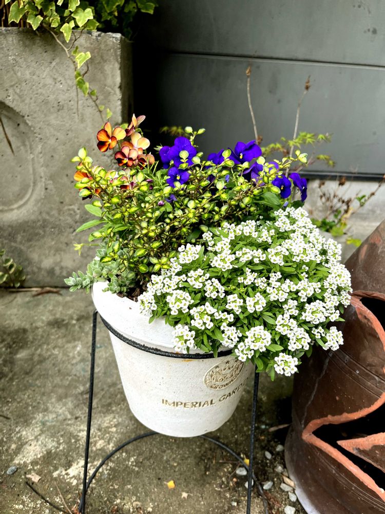 少し日陰気味の寄せ植えの方がいい感じに育っています🌱